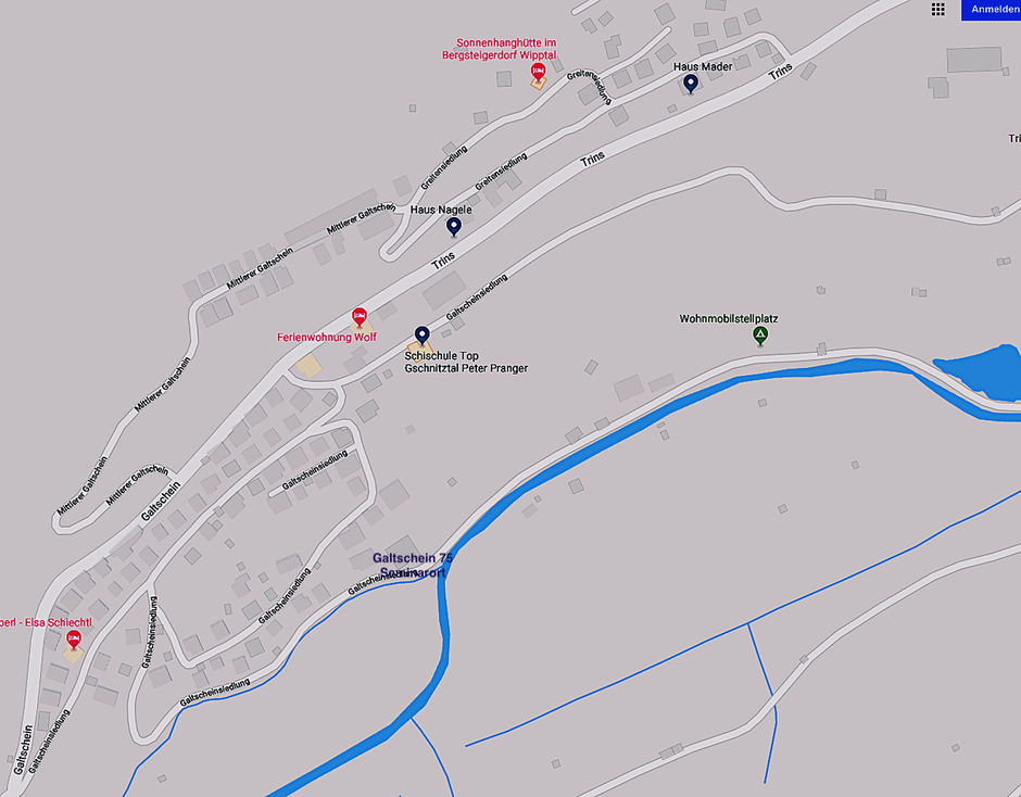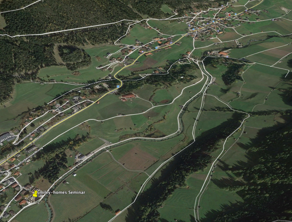 Ø In Trins beim Gemeindeamt /Raiffeisen-Bank lins hinunter abbiegen. Dann sind es ca. 2 km bis zum Ziel
